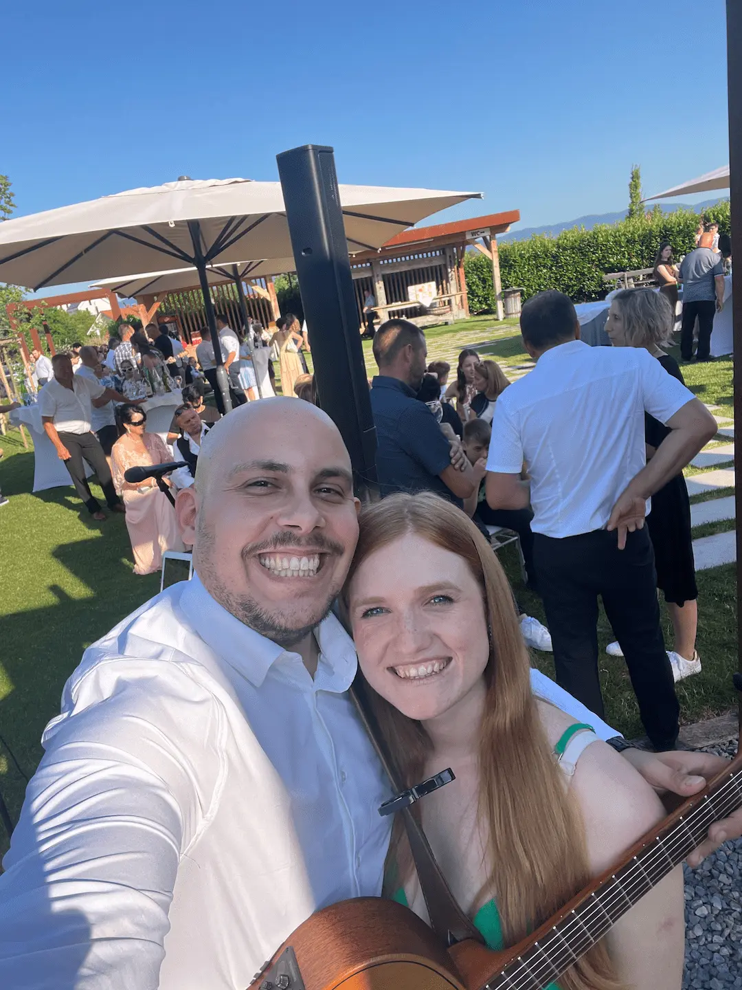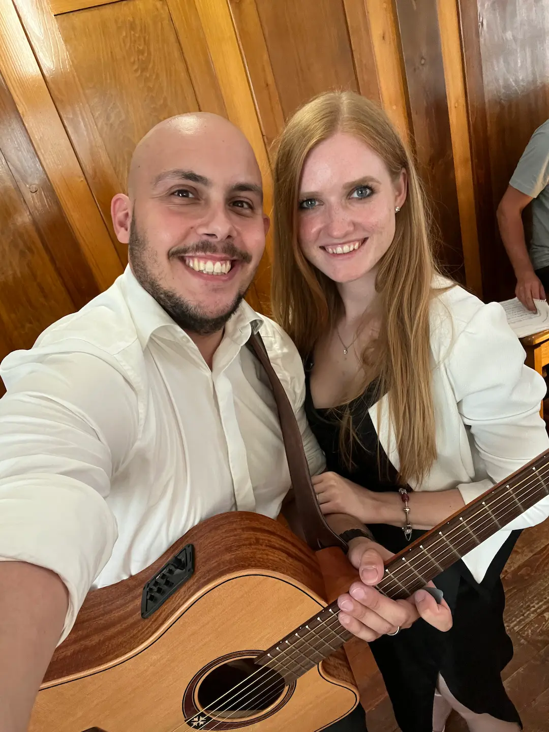 dvoglasno petje ob spremljavi kitare, na porokah poleg kitare nudiva spremljavo tudi s